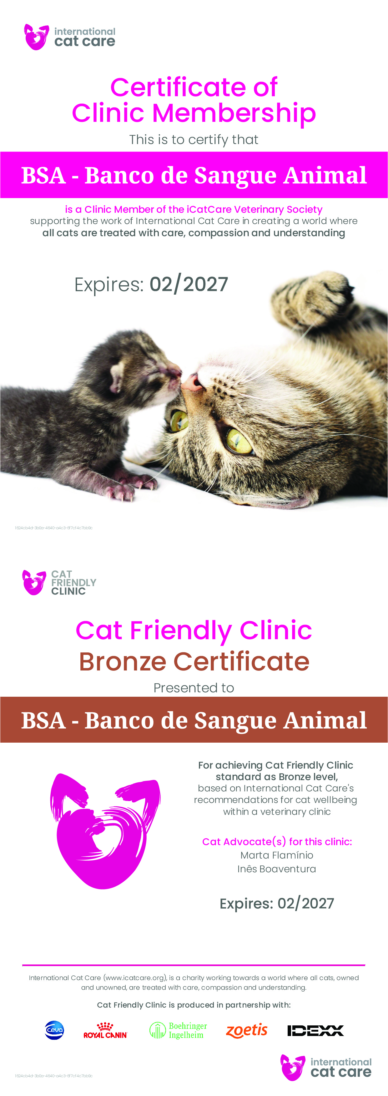 BSA est accréditée CAT FRIENDLY par la Société Internationale de Médecine Féline, étant la seule Banque de Sang Vétérinaire avec une telle distinction.
